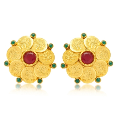 This Gorgeous Gold Plated Temple Jewellery Coin Earring for Women is made of Copper. Women love jewellery; specially traditional jewellery adore a women. They wear it on different occasion. They have special importance on ring ceremony, wedding and festive time. They can also wear it on regular basis . Make your moment memorable with this range. This jewel set features a unique one of a kind traditional emblish with antic finish.